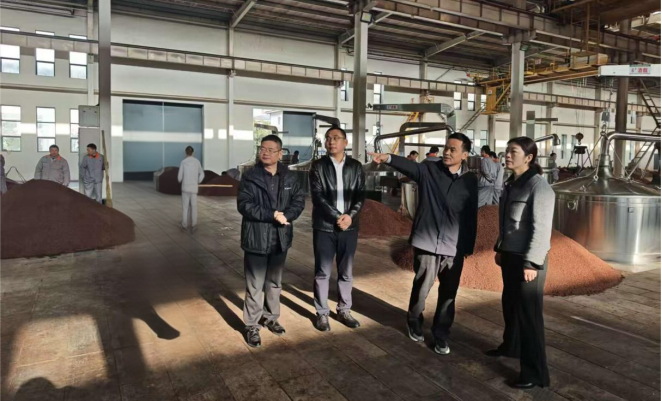 一行人赴湖北尧治河楚翁泉酒业有限公司参观交流,在湖北荆楚工匠、公司技术总工田龙新的陪同下深入酿酒生产车间、酒体研发实验室等核心区域。田龙新介绍了公司发展历程、古法酿酒技艺的发展情况、工艺特点、关键工序,以及酒体风味优化等方面的创新突破。双方围绕专业人才培养、科研成果转化、实习实践基地共建等内容深入沟通。赵喜红强调校企协同育人对提升学生实践能力、适配行业需求的重要性,希望企业深度参与课程设置、实践教学等环节,培养适应行业发展的复合型人才;郑冬洁立足学生成长与就业服务,提出加强校企人才交流、搭建实习就业平台,探寻产学研合作新路径,实现资源共享、互利共赢。