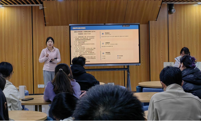 强化精准指导,护航学生学业发展。学院立足不同年级学生需求,于11月2日,分年级召开11月本科生年级大会。开展精准指导。面向毕业年级,重点进行考研就业动员与规划;针对中间年级,细致解读资助政策,强化纪律与习惯养成;对于新生年级,则着力引导适应与方法调整。此外,11月27日,学院在“一站式”社区钟楼A3活动室开展主题为“解锁四六级高分密码”英语四六级经验分享交流活动。张颖、胡申芳和吴瑜婷三位高分学生分别围绕听力精听真题、阅读“题干定位法”、写作翻译素材积累等分享备考干货。此次交流会为备考学子搭建了高效学习平台,助力大家明晰复习方向,提升应试能力。