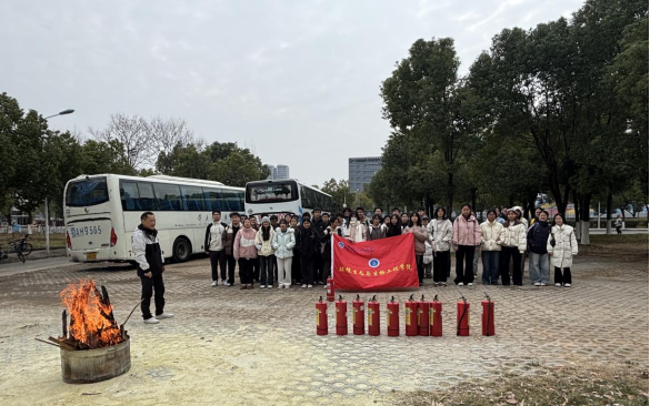 理论讲解结束后,全体师生移至室外空地,进行灭火器实操演练。王子龙现场演示了干粉灭火器的正确使用方法,包括“提、拔、握、压”四个关键步骤,并指导师生分组进行实操。大家轮流操作灭火器,对模拟火源进行扑灭练习。