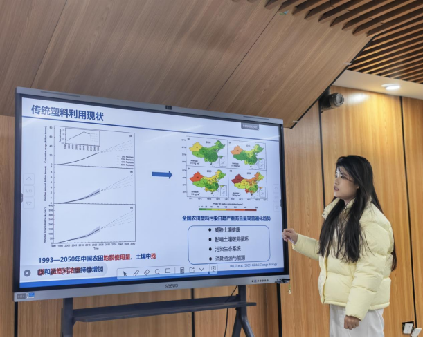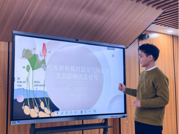 会上,六位研究生依次登台,研究工作涵盖了土壤环境、生物医学、水生态、城市工程、温室气体控制及生态修复等多个前沿方向,就个人研究方向、研究成果、及相关专业权威文献进行了分享。他们的报告内容丰富详实、观点新颖独到、逻辑严谨周密,体现了环境领域多学科交叉与创新发展的特点。赢得了在场师生的阵阵掌声。
