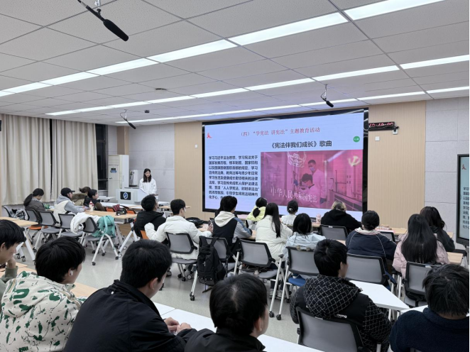 学法懂法守底线,普法践行传温情。学院各班开展“学宪法 讲宪法”为主题的教育活动,重点学习习近平法治思想,系统解读宪法中关于国家发展历程、根本制度等核心内容,同时普及民法典、教育法、未成年人保护法等与青少年成长密切相关的法律法规,营造“人人学宪法、时时讲法治”的浓厚氛围,引导学生将宪法精神内化于心、外化于行。12月21日,学院“红细胞”志愿服务队走进新北路社区,开展“与法‘童’行,快乐成长”志愿服务活动。志愿者通过趣味PPT、动画视频等形式,以儿童视角生动解读“宪法是什么”“宪法与生活的联系”等核心问题。宣讲结束后,志愿者带领小朋友开展“橡皮泥制作法官锤”手工活动,在动手实践中深化法治认知。参与家长纷纷表示,活动兼具教育性与趣味性,既锻炼了孩子的动手能力,也帮助其树立了初步的法治观念。