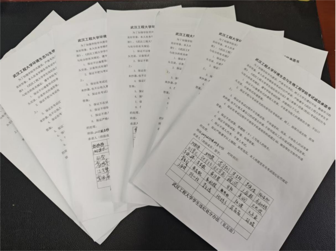 端正考风强意识,严守纪律促成才。学院各年级组织开展“端正学习态度,强化考风考纪”为主题的教育活动。各班级通过主题班会等形式,集中学习《中华人民共和国教育法》及《武汉工程大学学生管理规定》《武汉工程大学学生违纪处分办法》等相关规章制度,详细解读考试违规处理细则。活动现场,全体学生郑重签署考试诚信承诺书,以书面形式立下诚信誓言,进一步强化诚信应考的责任意识,引导学生树立诚信考试意识,以端正态度迎接期末考试。