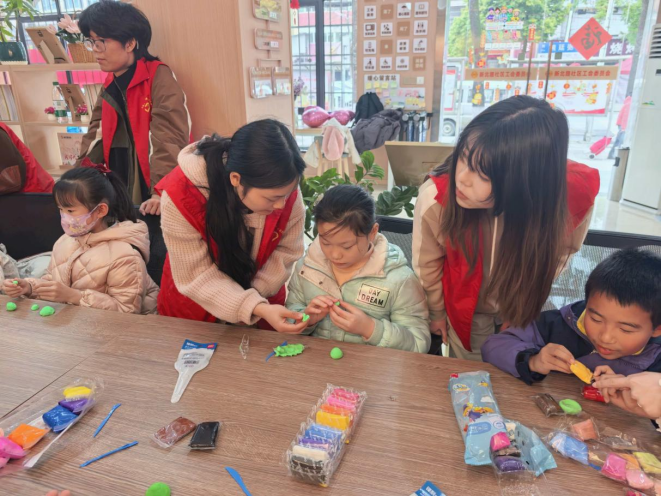 在创意手工环节,志愿者带领孩子们运用彩泥亲手制作雷锋帽。在志愿者耐心指导下,一块块彩泥逐渐变成了一顶顶造型生动、精致可爱的雷锋帽。孩子们纷纷展示自己的作品,脸上洋溢着自豪与喜悦,在动手实践中感悟雷锋精神。活动结束后,志愿者们主动清扫活动场地及周边环境,以实际行动践行雷锋精神与环保理念,充分展现了青年志愿者的责任与担当。