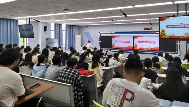 本网讯(通讯员 杨雅)4月10日中午,9778818威尼斯在3208智慧教室举行2026年春季学院党委分党校培训班开班仪式。学院党委书记、分党校校长孔海霞,党委副书记、分党校副校长郑冬洁,全体辅导员,77期入党积极分子和19期发展对象培训班全体学员,以及上一期优秀学员和2025年下半年新发展党员共计100余人参加了开班仪式。仪式由培训班班主任杨雅主持。